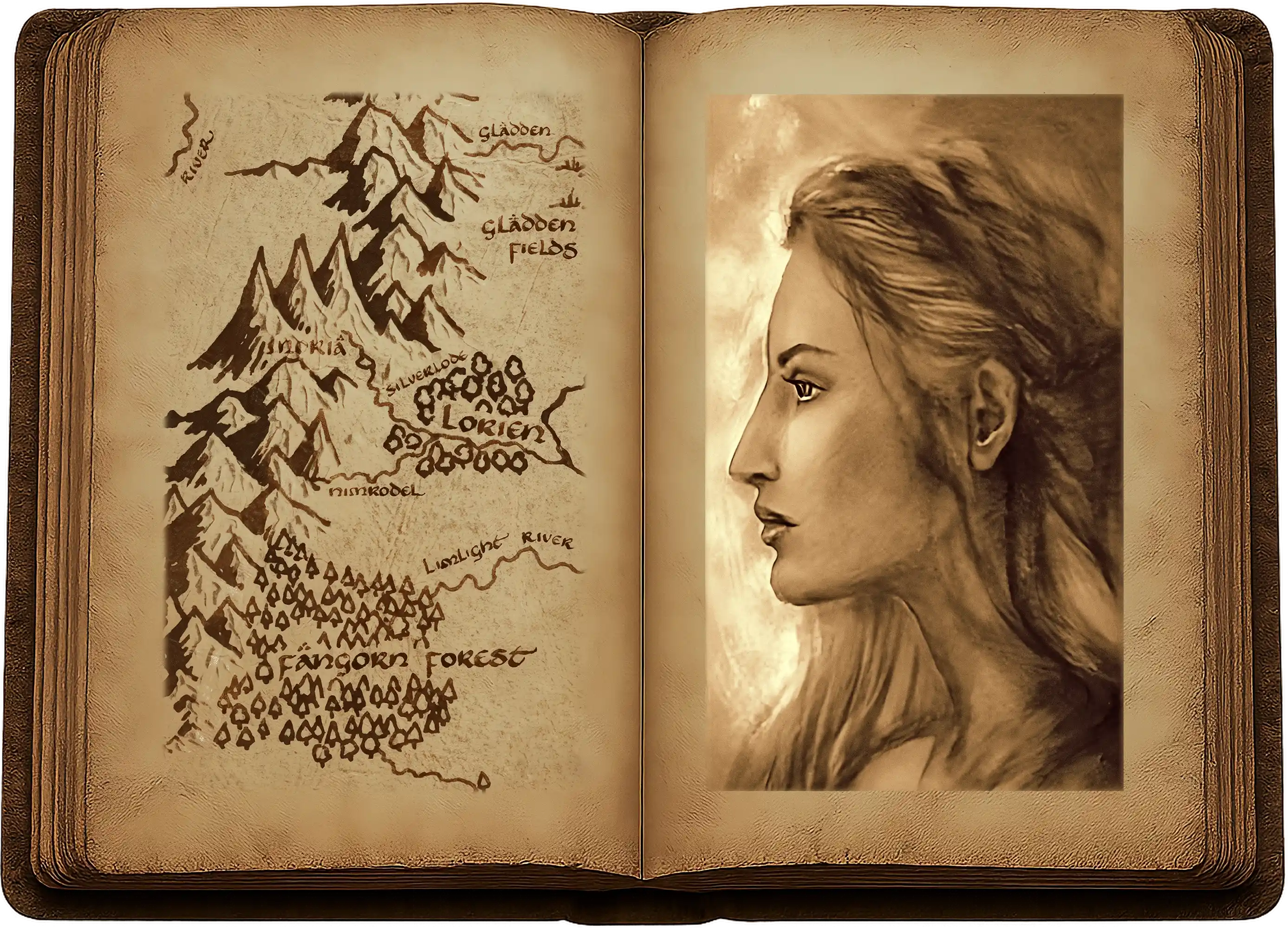 « Votre quête nous est connue, dit Galadriel en regardant Frodo. Nous n’en parlerons pas ici plus ouvertement. Mais ce n’est peut-être pas en vain si vous êtes venus chercher de l’aide en ce pays, comme Gandalf lui-même se proposait de le faire, de toute évidence. Car le Seigneur des Galadhrim est réputé le plus sage des Elfes de la Terre du Milieu, et un donneur de présents qui surpassent l’opulence des rois. Il réside dans l’Ouest depuis l’aube des jours, et j’ai vécu avec lui un nombre incalculable d’années ; car j’ai traversé les montagnes avant la chute de Nargothrond et de Gondolin, et ensemble, à travers les âges du monde, nous avons combattu dans la longue défaite.