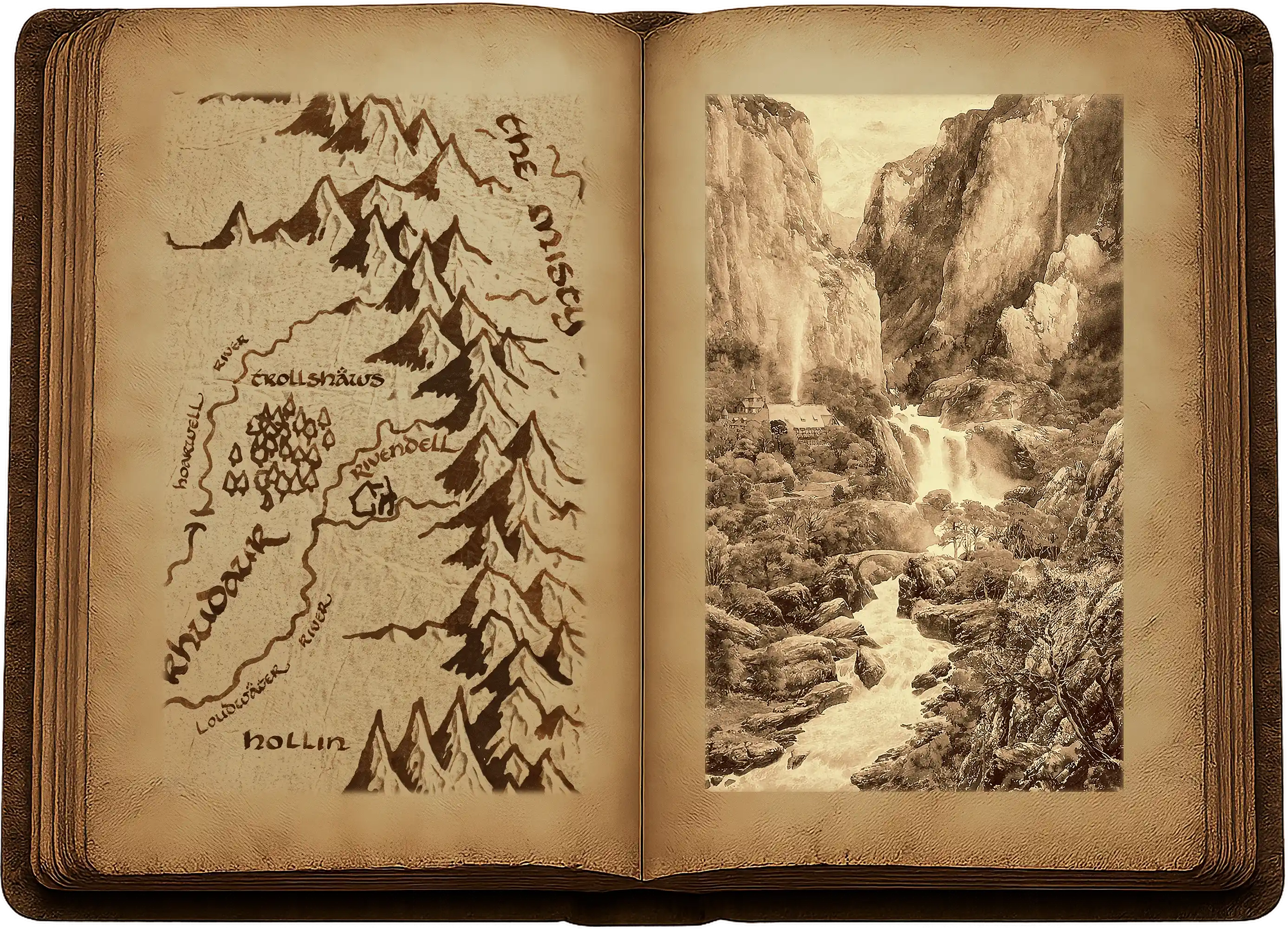 « J’arrivai enfin ici après une longue et dure route, ayant remonté la Fongrège à travers les Landes d’Etten pour ensuite redescendre du nord. Il me fallut près de quinze jours depuis Montauvent, car je ne pouvais aller à cheval parmi les hautes terres des trolls, et Scadufax dut me quitter. Je l’envoyai retrouver son maître ; mais une grande amitié est née entre nous, et il viendra à moi si dans le besoin je l’appelle. Ainsi donc, j’arrivai à Fendeval seulement deux jours avant l’Anneau ; et le danger qu’il courait était déjà connu ici – ce qui fut vraiment très heureux pour nous.