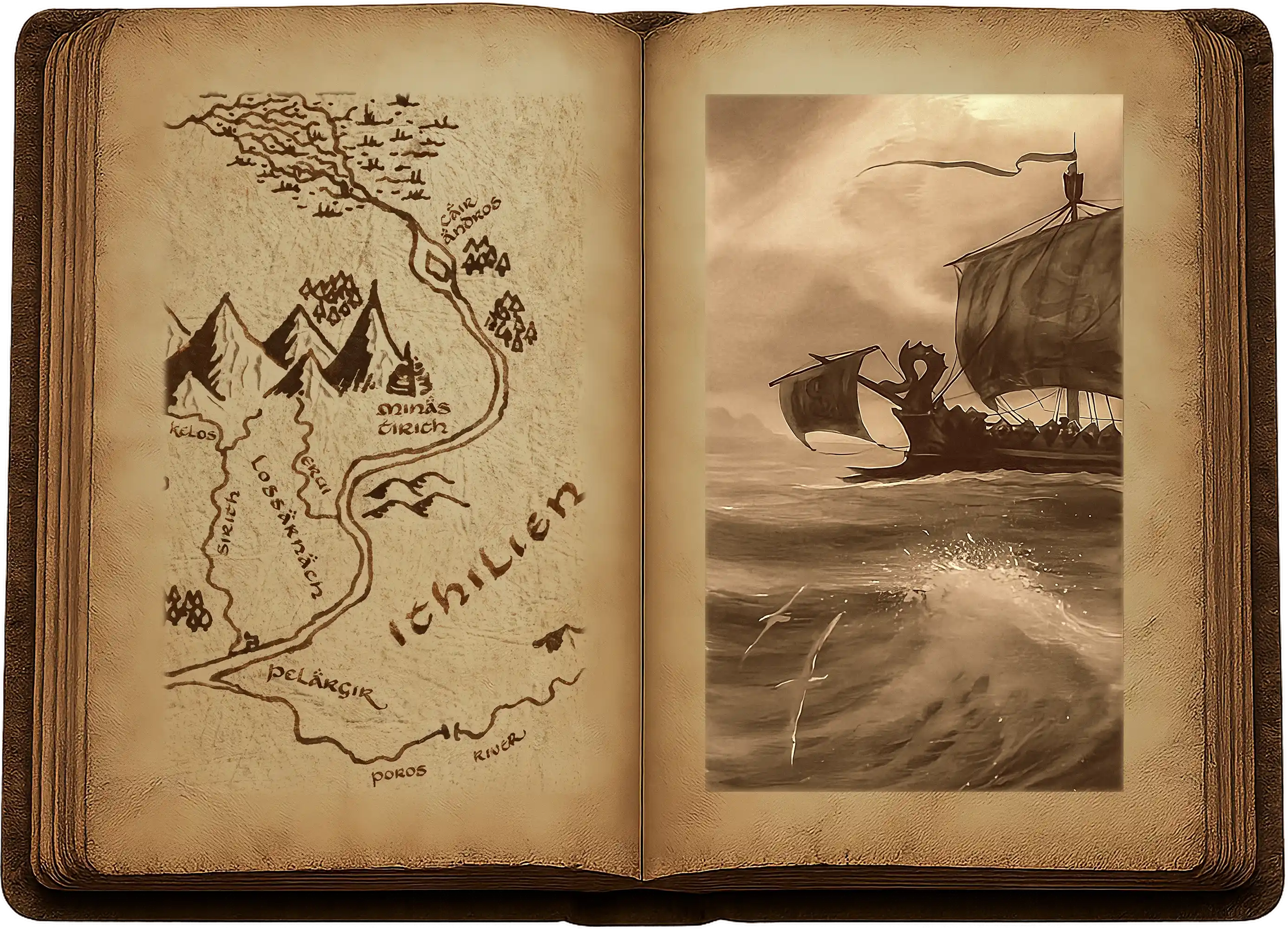 « Regardez ! s’écria-t-il. Des mouettes ! Elles volent loin dans les terres, une merveille à mes yeux et un trouble pour mon cœur. Jamais de ma vie je ne les avais vues avant d’arriver à Pelargir ; et je les entendis là-bas crier dans l’air, tandis que nous allions à cheval vers la bataille des navires. Alors je restai coi, oubliant la guerre en Terre du Milieu, car leurs voix plaintives me parlaient de la Mer. La Mer ! Hélas ! Je ne l’ai pas encore contemplée. Mais au plus profond du cœur des miens réside la nostalgie de la mer, qu’il est périlleux de remuer. Hélas ! pour les mouettes. Plus jamais je ne serai en paix, sous le hêtre ou sous l’orme. »