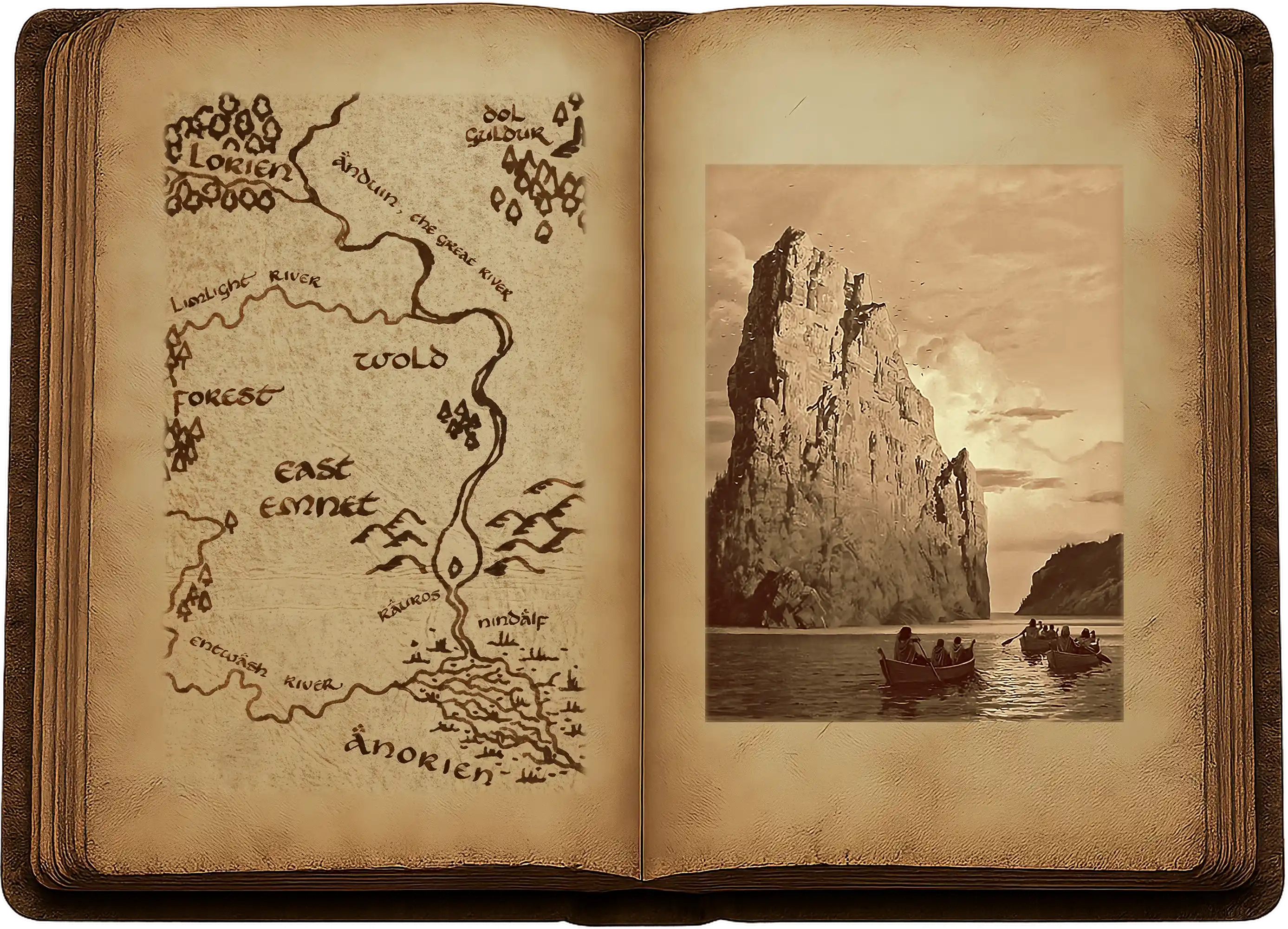 Les autres étaient longtemps demeurés près de la rive. Ils étaient restés silencieux quelque temps, faisant les cent pas ; mais à présent, ils étaient assis en cercle et discutaient. De temps à autre, ils s’efforçaient de parler d’autre chose, de leur longue route et de leurs nombreuses aventures ; ils questionnèrent Aragorn au sujet du royaume de Gondor et de son histoire ancienne, des vestiges de ses grandes œuvres que l’on apercevait encore dans cette étrange région limitrophe, pays des Emyn Muil : les rois de pierre, les sièges de Lhaw et de Hen, et le grand Escalier en bordure des chutes du Rauros. Mais leurs pensées et leur conversation finissaient toujours par revenir à Frodo et à l’Anneau. Quel serait le choix de Frodo ? Pourquoi hésitait-il ?