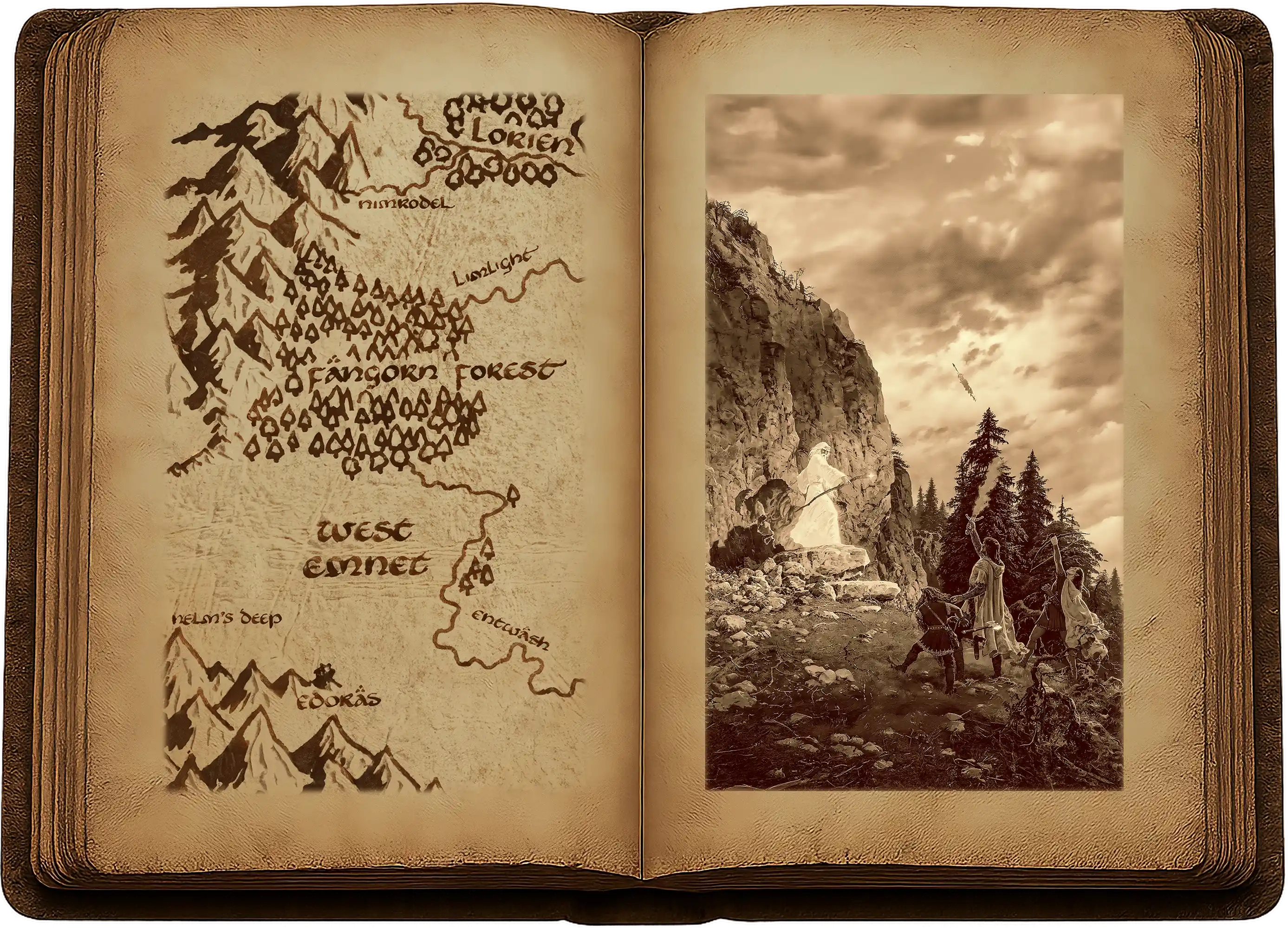 « Grimpons là-haut et regardons aux alentours ! dit Legolas. J’ai encore le souffle court. J’aimerais goûter un air moins confiné pour quelques instants. »