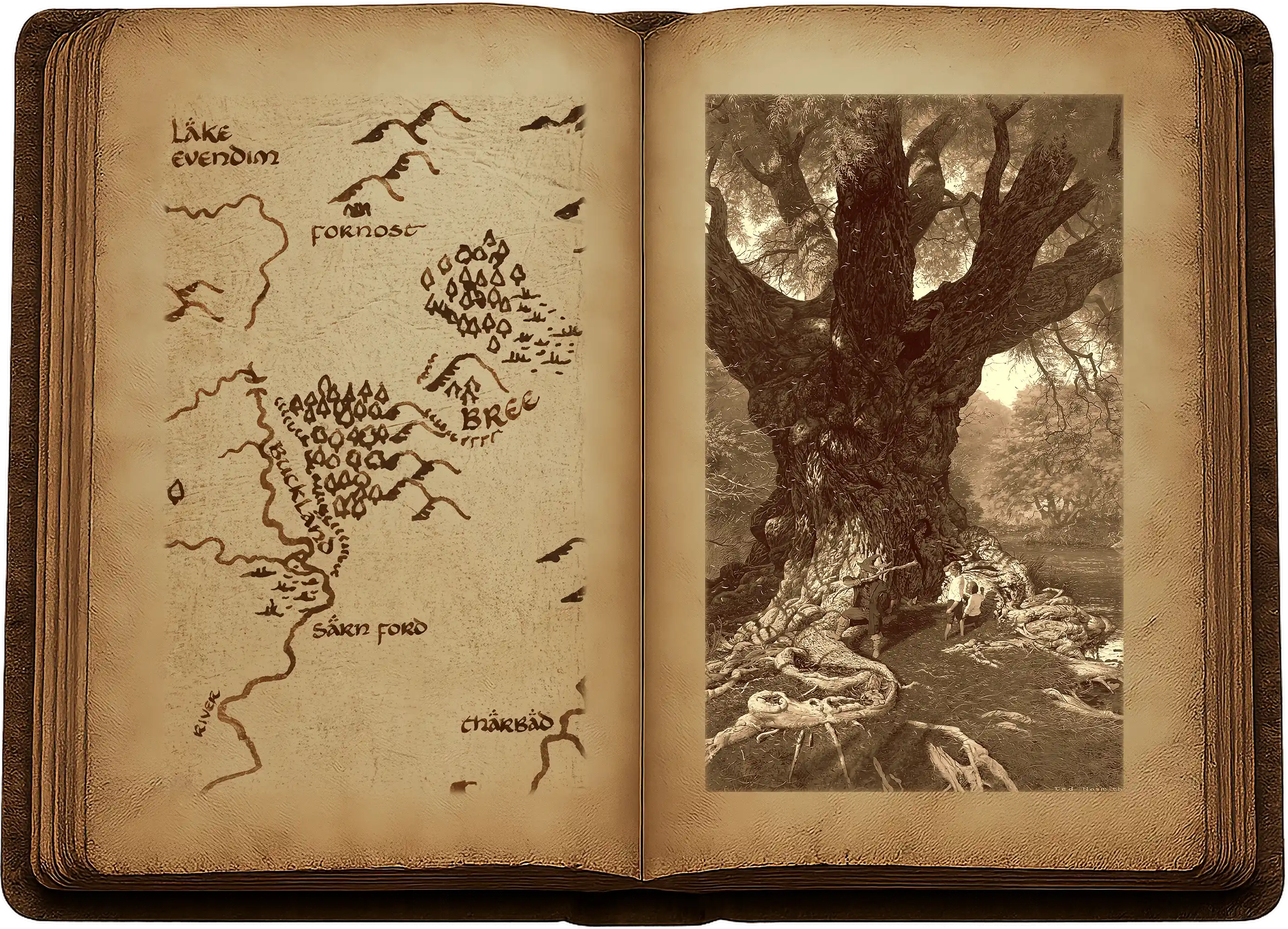« On pourrait commencer par essayer de faire mal à cet arbre, ou bien lui faire peur, dit Sam avec férocité. S’il les laisse pas partir, je vais l’abattre, quand bien même j’aurais à le ronger. » Il courut vers les poneys et revint bientôt avec une hachette et deux briquets à amadou.