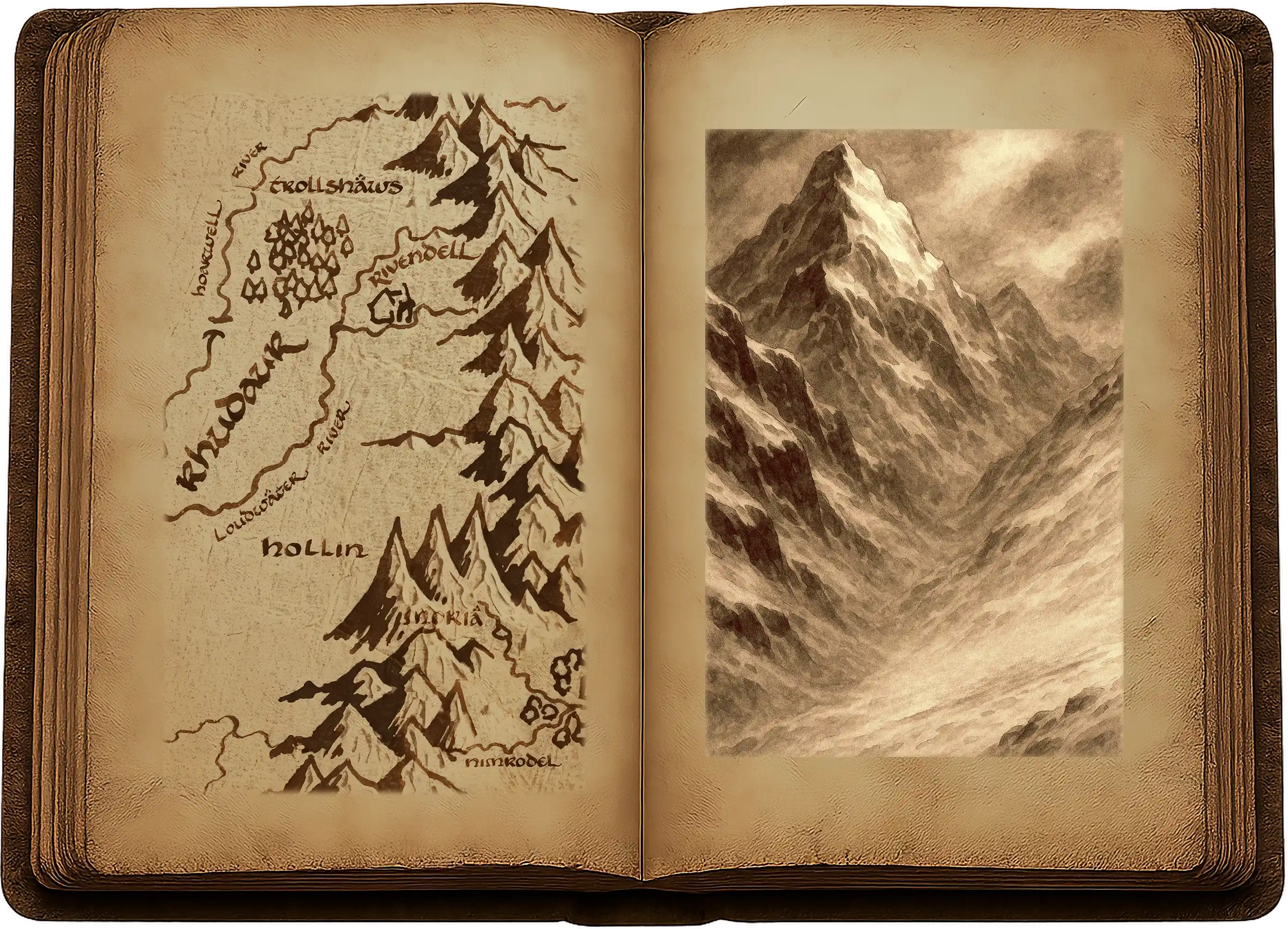 « D’après les signes que nous avons vus récemment, dit Gandalf, je crains que la Porte de Cornerouge ne soit surveillée ; et le temps qui se dessine derrière nous me fait également douter. Il pourrait y avoir de la neige. Nous devons autant que possible nous dépêcher. Même alors, il nous faudra plus de deux longues marches avant d’atteindre le sommet du col. L’obscurité viendra tôt ce soir. Nous devrons partir aussitôt que vous serez prêts. »